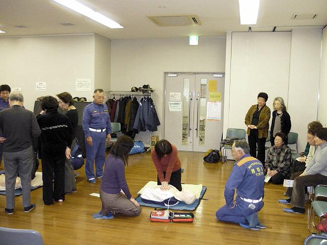 3月14日午後2時からビルニューブタワー2階の町会会館に於いて、野沢4丁目町会主催のAED講習会が行われました。