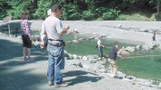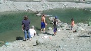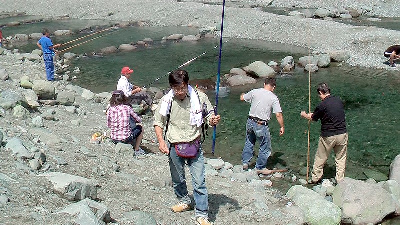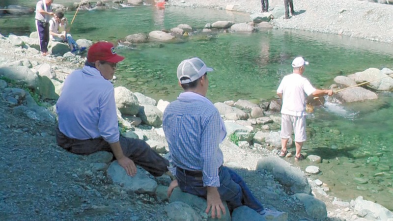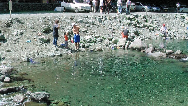 朝7時30分に分団本部を出発して神奈川県宮ヶ瀬湖の奥にある早戸川国際マスつり場に行き、マスつりとバーベキューを楽しみました。