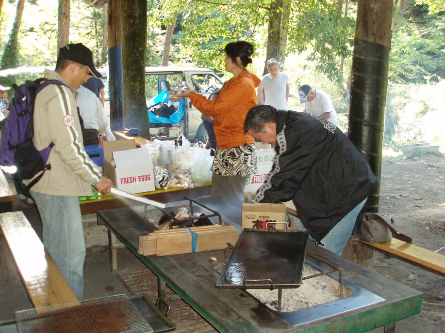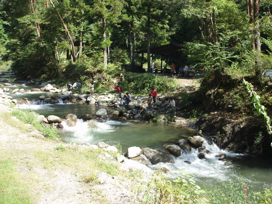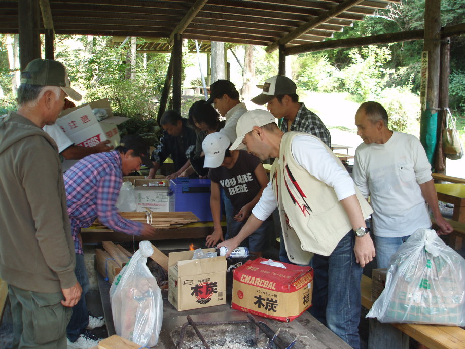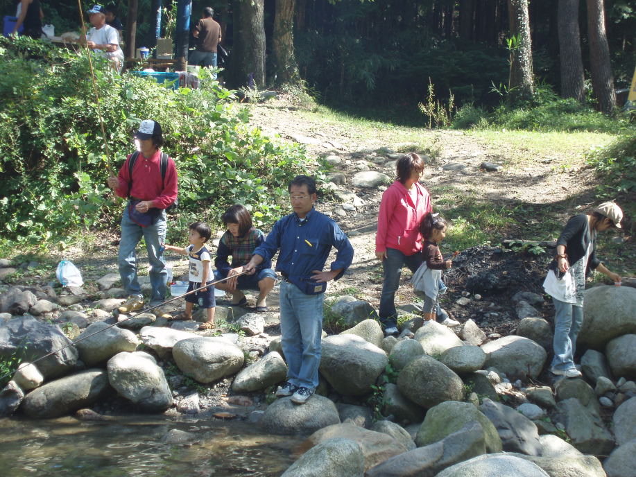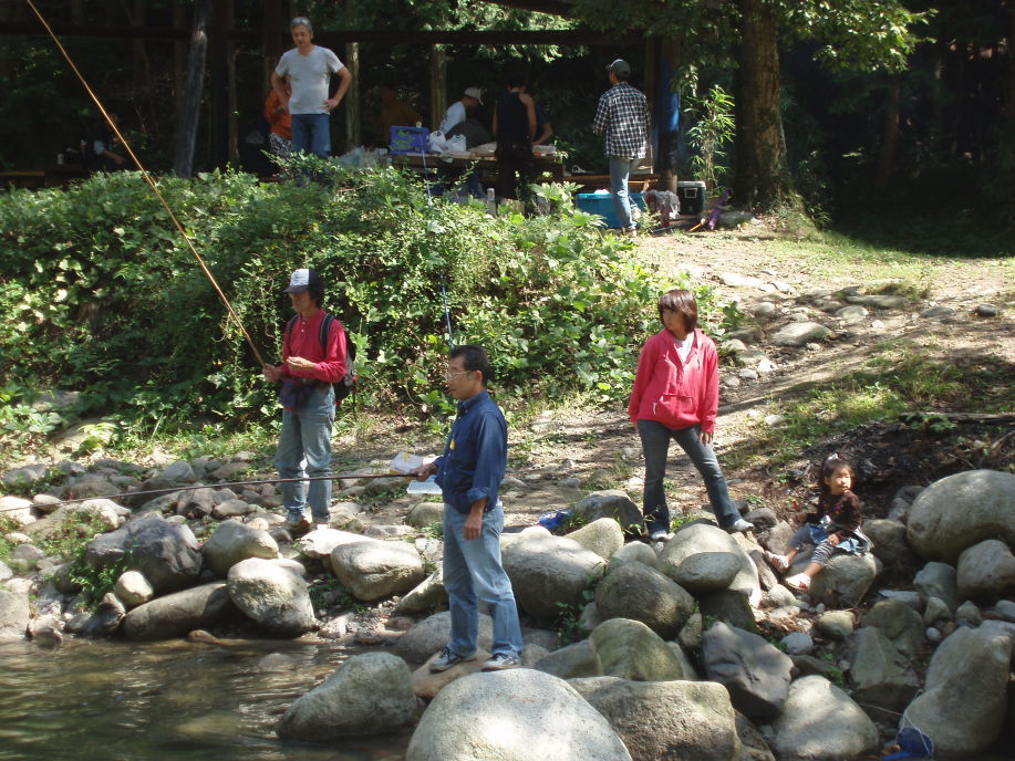 朝7時30分に分団本部を出発して山梨県大月にある金の森山荘へ、お天気が心配でしたが良い天気に恵まれ、団員さんのご家族も大勢参加して頂き、マスつりとバーベキューをして、賑やかで楽しい一日を過ごしました。