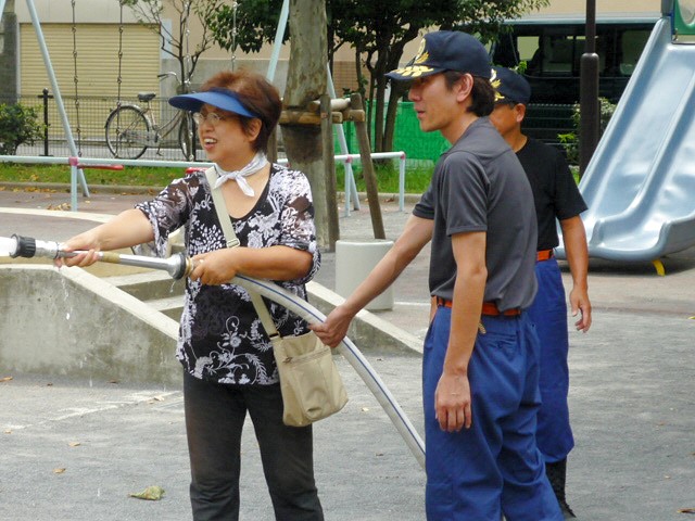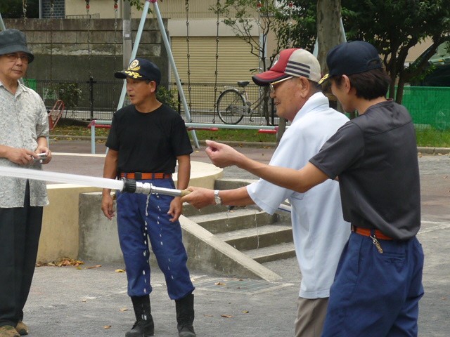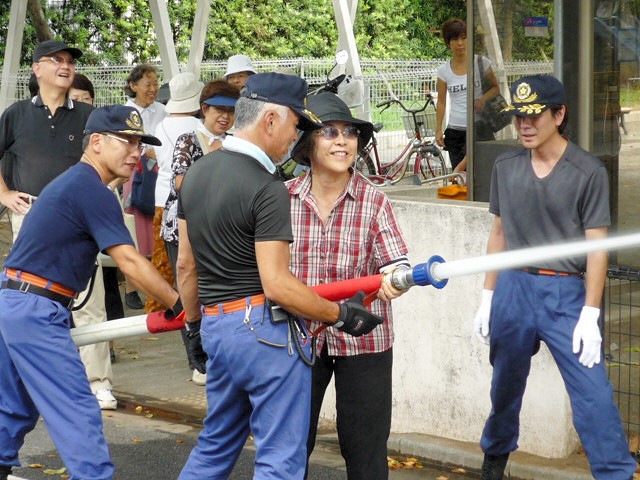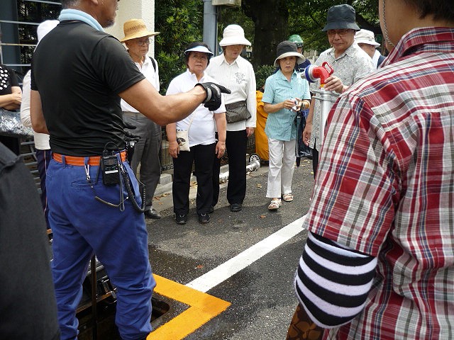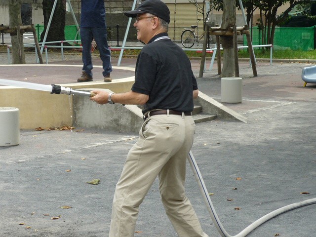 下馬5丁目、6丁目のスタンドパプ訓練を、8月29日(日)午後1時から下馬公園にて行いました。 大変熱い日でしたが大勢の方が参加してくださいました。一般の方が扱いやすいD型ポンプ、40oスタンドパイプ訓練のほか、消防団に配備されている65o スタンドパイプも実際に放水していただき、スタンドパイプの有効性を認識していただいたことと思います。 今後とも地域に根差した消防団として有益な訓練が行えるよう私たち12分団も努力してまいります。