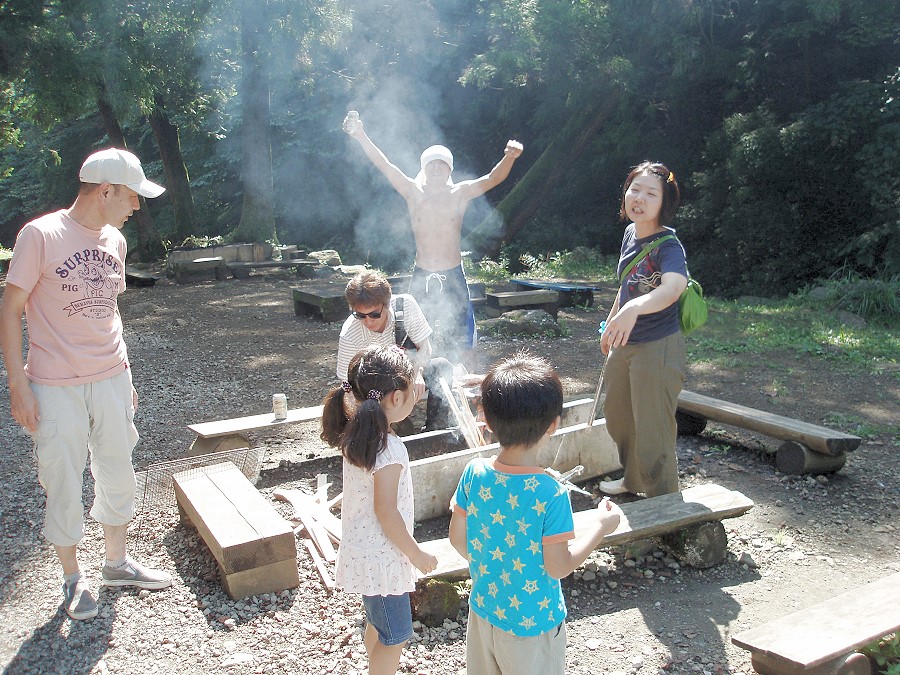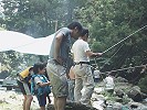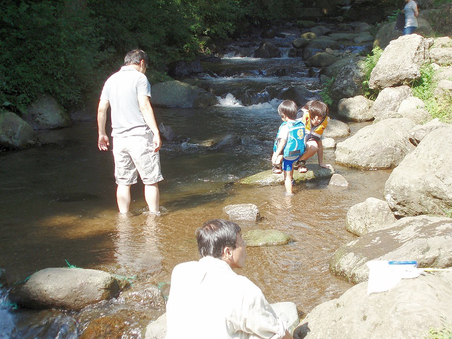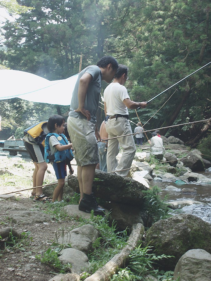朝7時30分に分団本部を出発して神奈川県大山の麓日向渓谷へ、お天気が心配でしたが良い天気に恵まれ、団員さんのご家族も大勢参加して頂き、マスつりとバーベキューをして、 帰りは近くのクアハウス山小屋で温泉に入り、みんな気持ちよく帰れました。