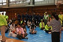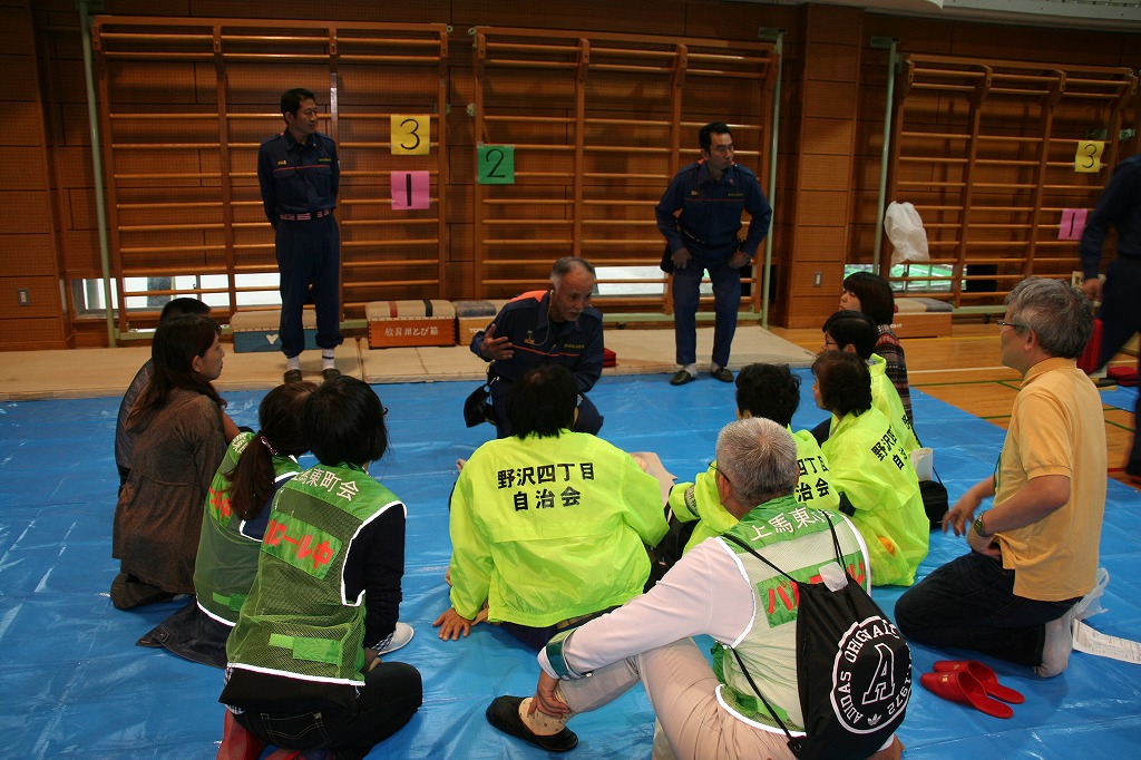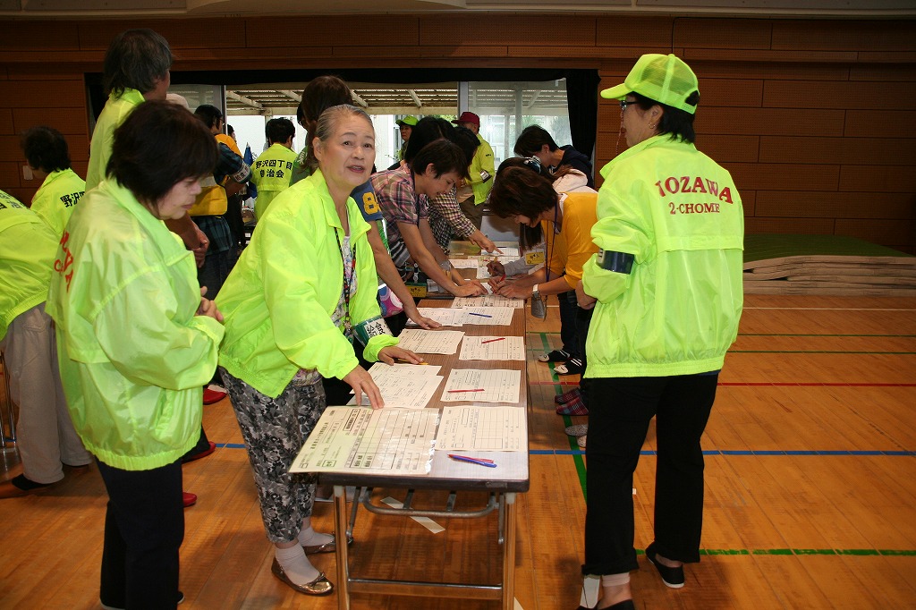 10月5日(日)旭小学校で防災訓練が行われました。この日は台風の影響で降雨のため体育館で実施されました。