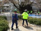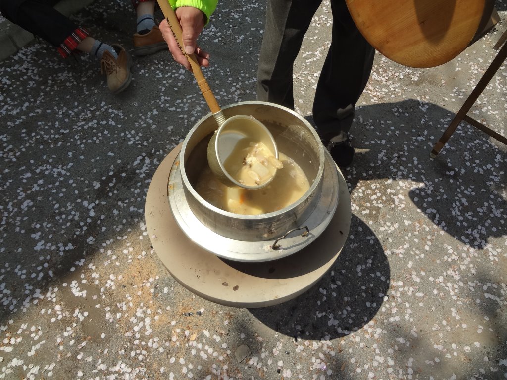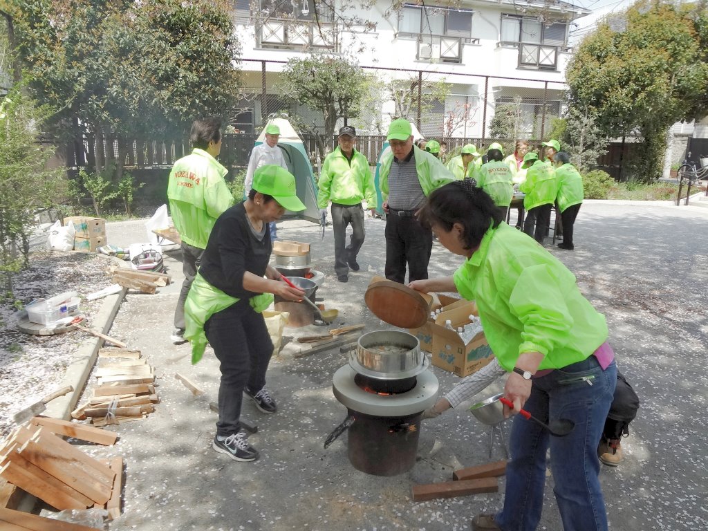 4月10日(木)野沢2丁目公園に於いて、野沢2町目町会主催の(お花見も兼ねた)炊き出し及び初期消火訓練が実施されました。 町会の役員さんが主なメンバーでしたが30名程集まり、公園に設置してあるベンチコンロを活用し豚汁を作りました。 さくらは少し見ごろを過ぎてしまいましたが、花吹雪が豚汁に色を添えていました。