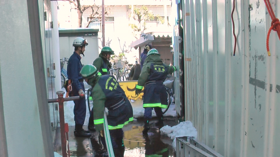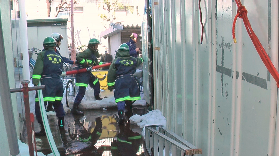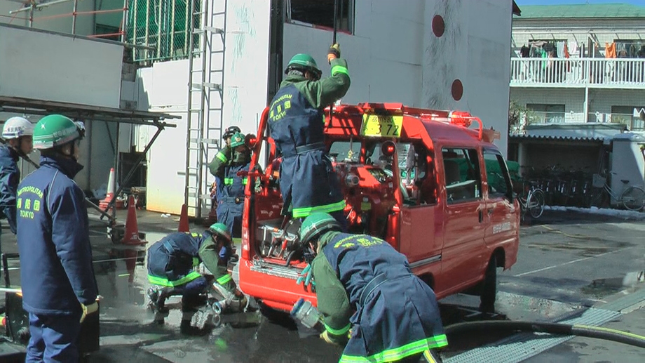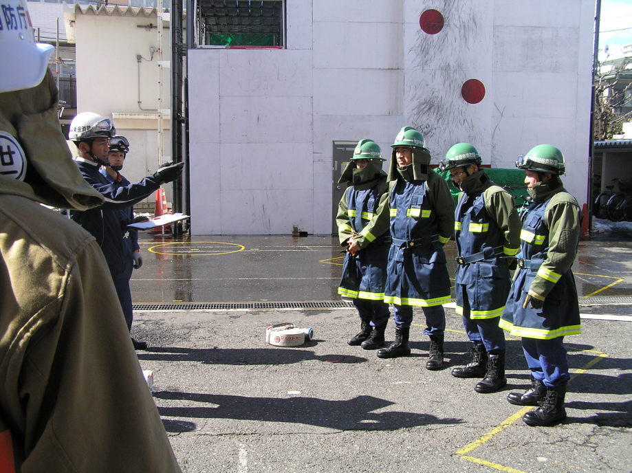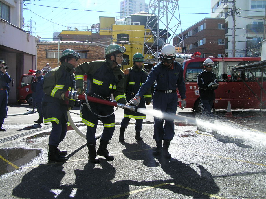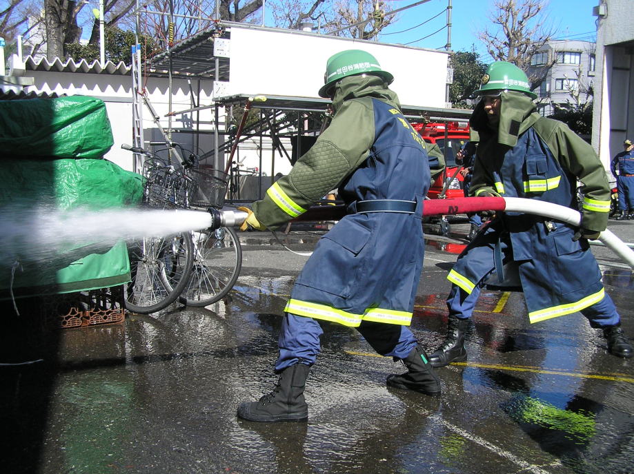 災害活動強化訓練の最終回は世田谷消防署にて行われました。当初、訓練は消防学校(渋谷区西原2丁目)にての実施予定でしたが、前日までの記録的な大雪のため三軒茶屋の世田谷消防署にて実施されました。日曜にも関わらず署長をはじめ署員、団本部の方々の出席をいただきました。