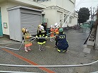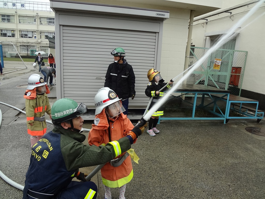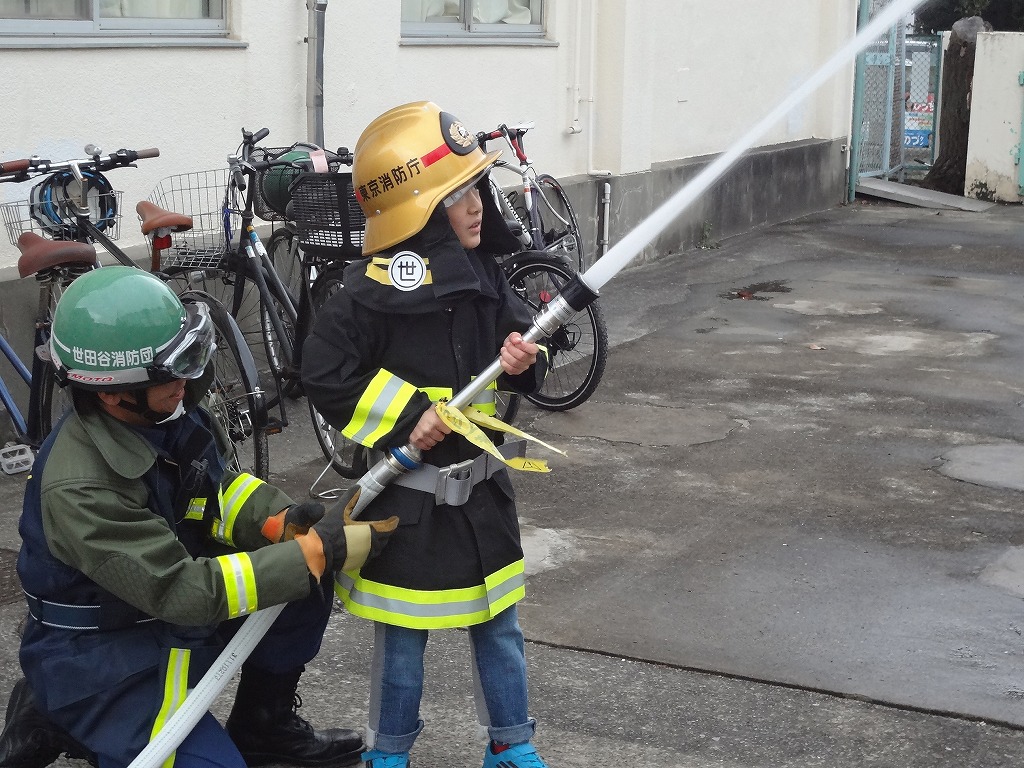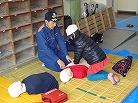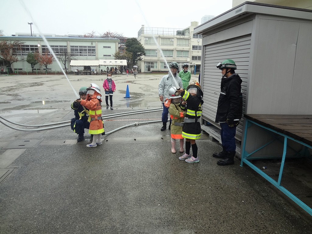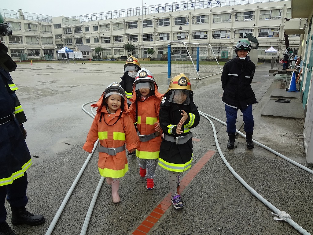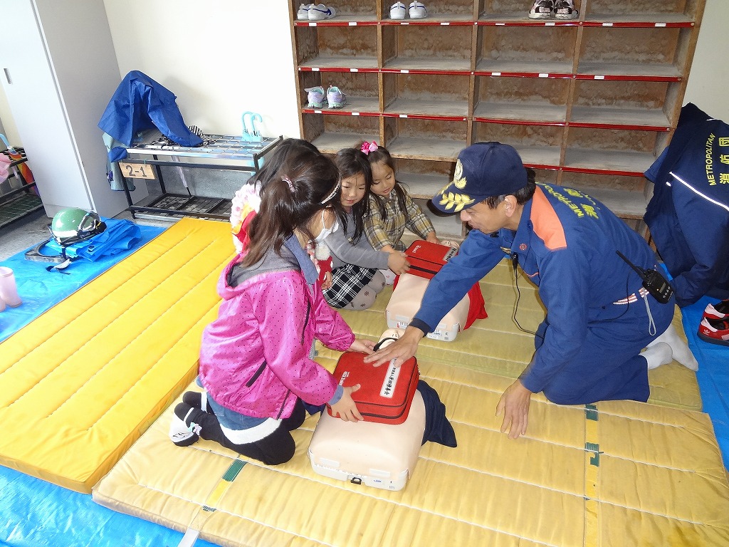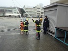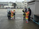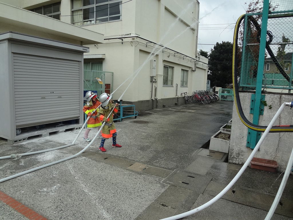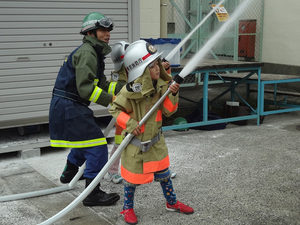 私たち12分団は、今年も「消火活動訓練とAED使ってみよう!」ブースでの参加。消火活動訓練は、学校のプールの貯水を水利にして積載車ポンプから40ミリホースでの消火訓練(体験)。子供用ですが本格的な防火服を着ての体験に大満足の子供たちのようでした。AEDも実際の講習会で使用するAEDと人形を使っての訓練(体験)です。心肺蘇生も一生懸命にやってくれました。