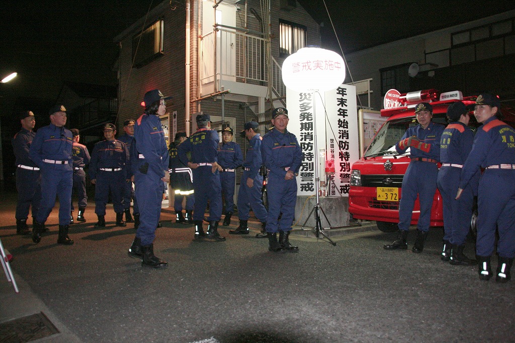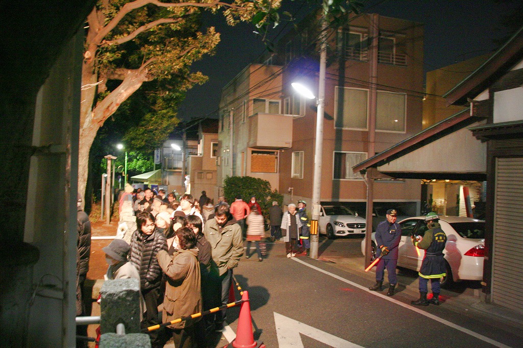 また世田谷消防署・三宿出張所長さんから激励と昨年一年の労いの言葉をいただきました。特別警戒巡回後の野沢龍雲寺と野沢稲荷神社の交通整理&周辺警備も大晦日の晩に行いました。穏やかないつもの年越しで参拝のお客様も皆さん楽しそうでした。