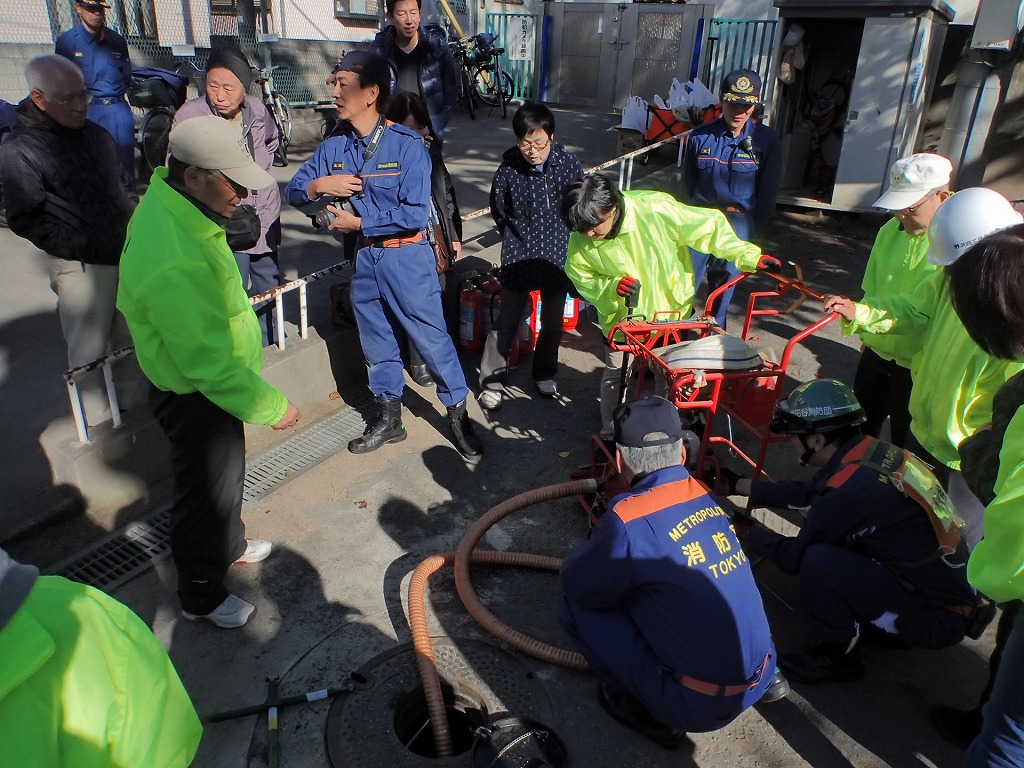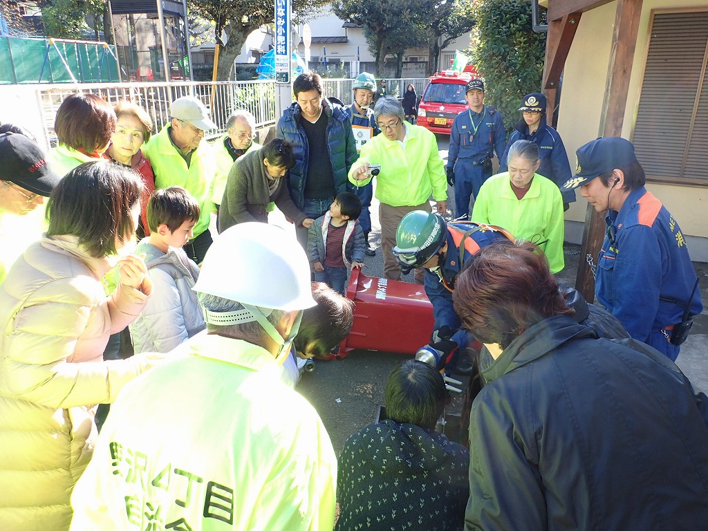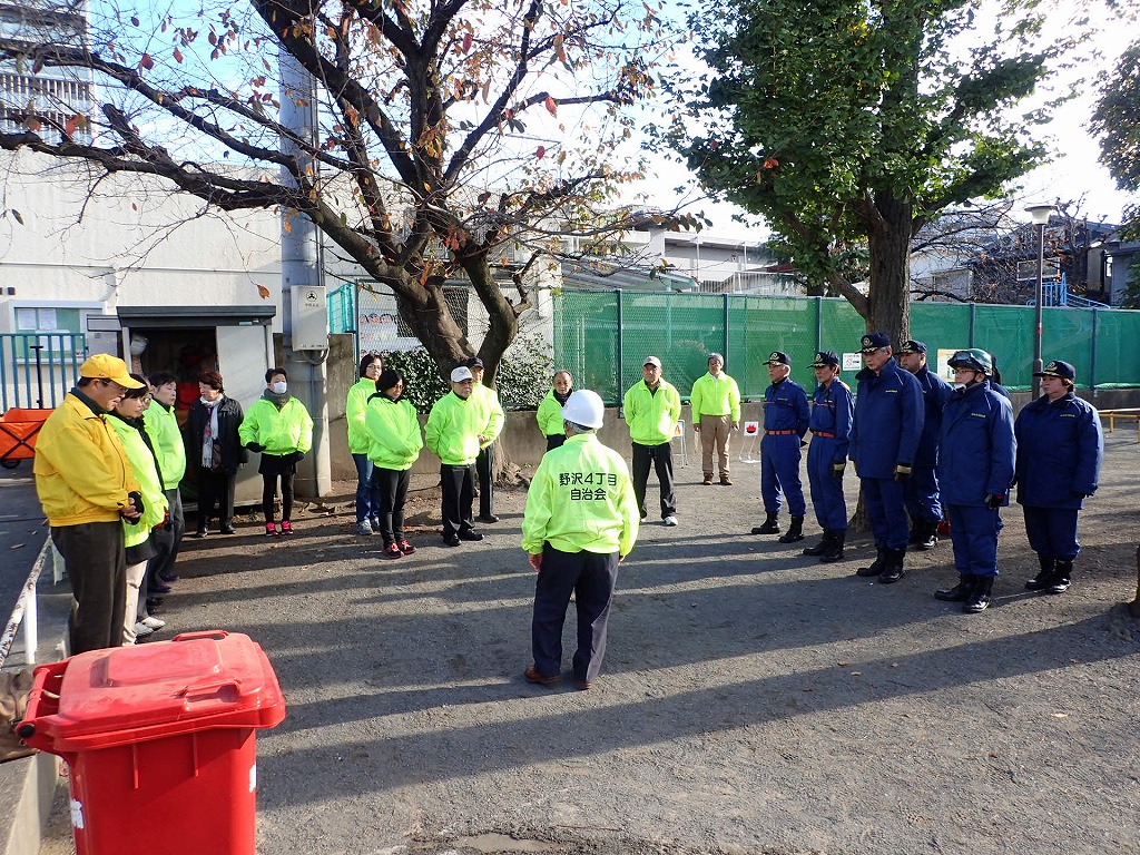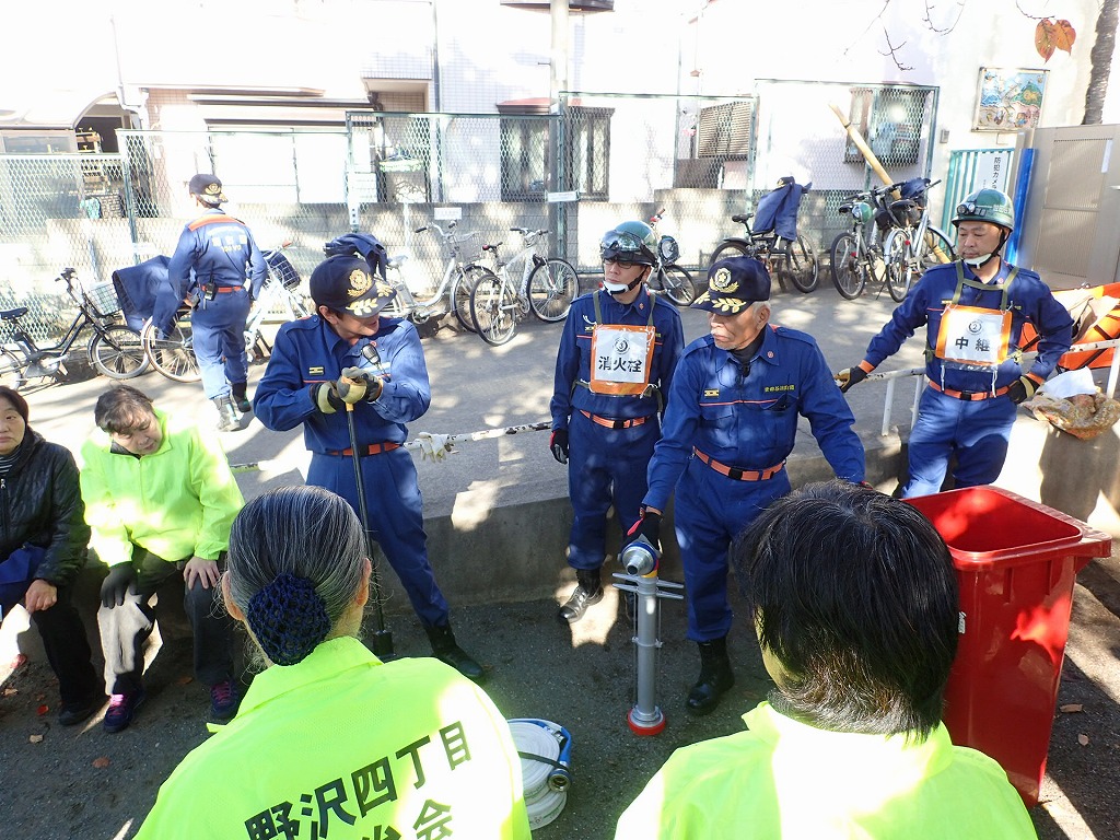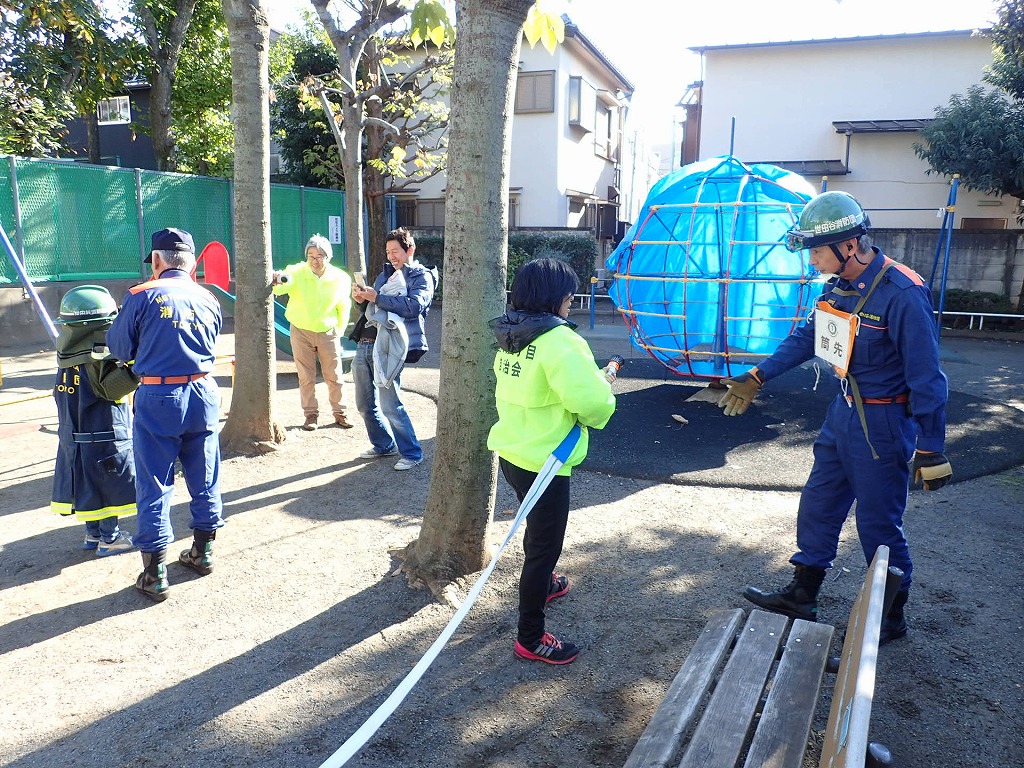 ■11月29(日)野沢4丁目町会さんの防災訓練が駒沢保育園脇の公園で行われました。今年で3回目となるこの防災訓練。今年も住民の皆さんに参加いただき世田谷消防署の方々とともに充実した訓練を行いました。