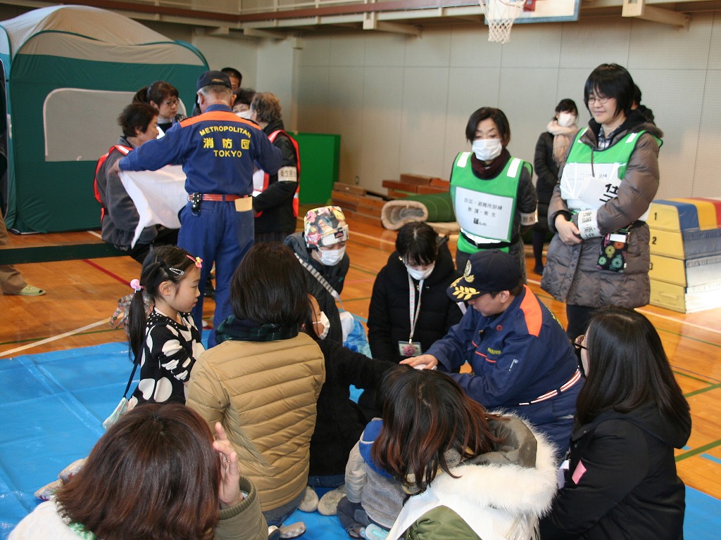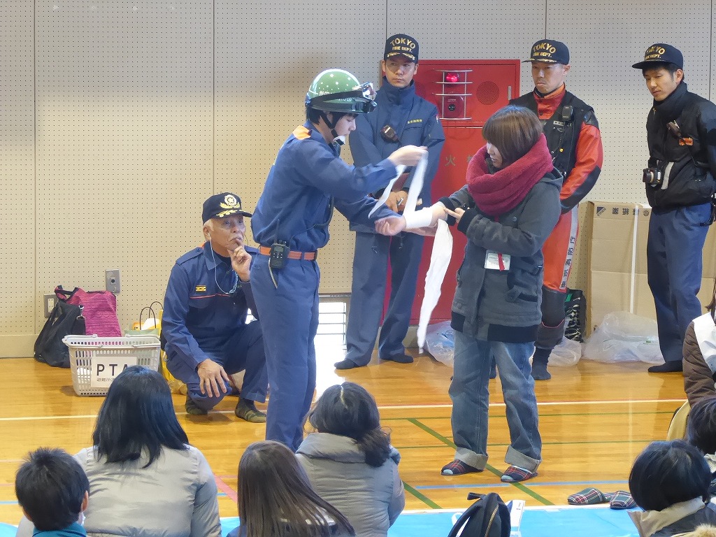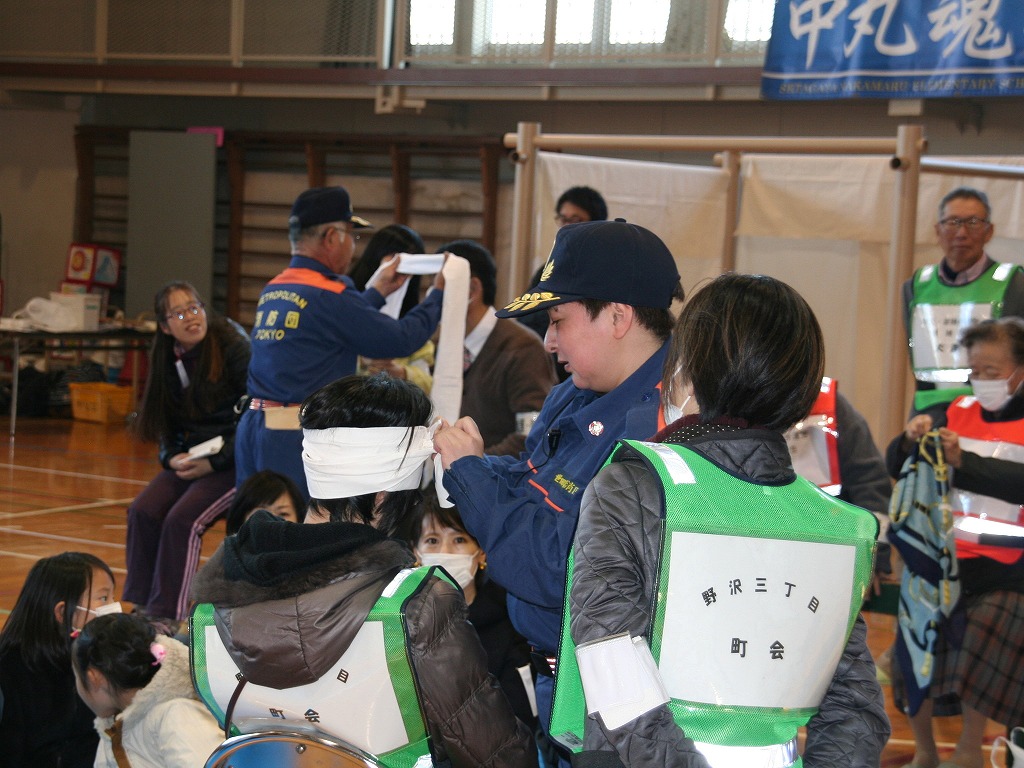 12月10日(土)。毎年恒例の野沢3丁目町会さんと下馬6丁目町会さんの避難所運営訓練が中丸小学校にて行われました。本来なら避難所運営訓練には参加しないのですが、今年は応急救護の指導を依頼され実施しました。