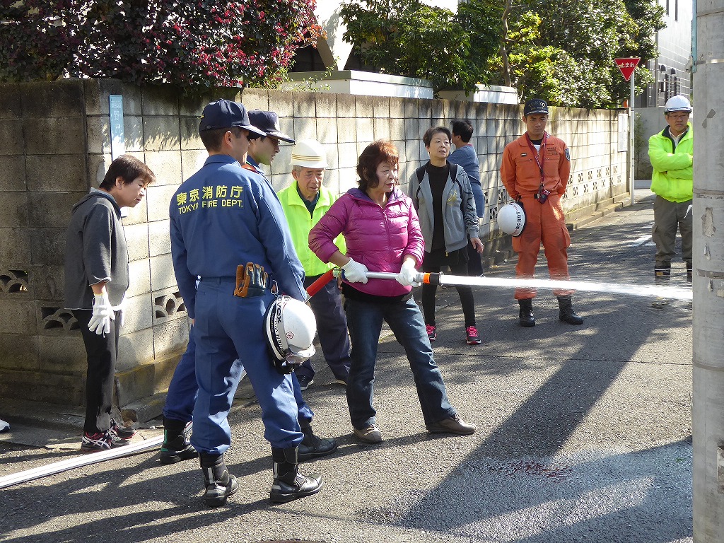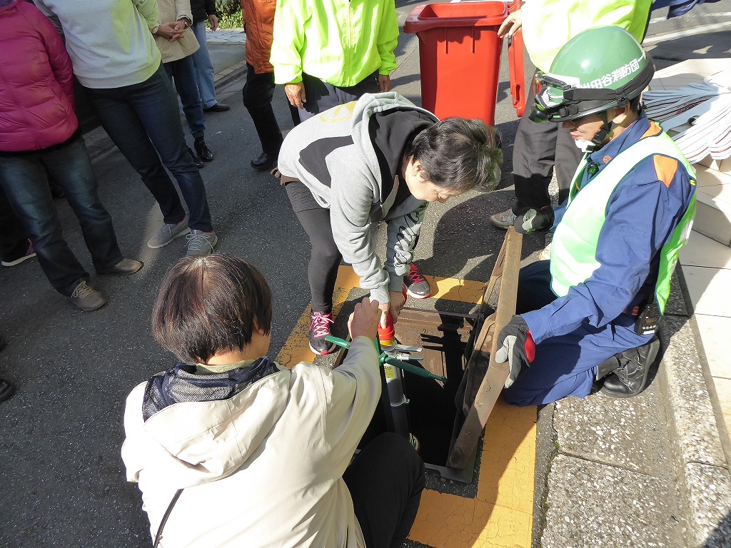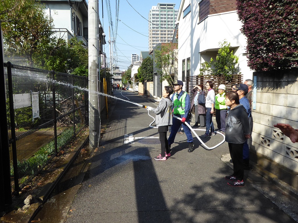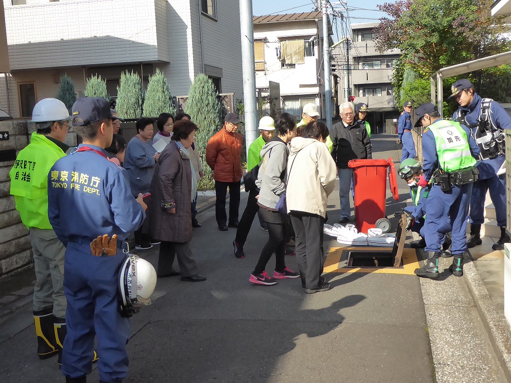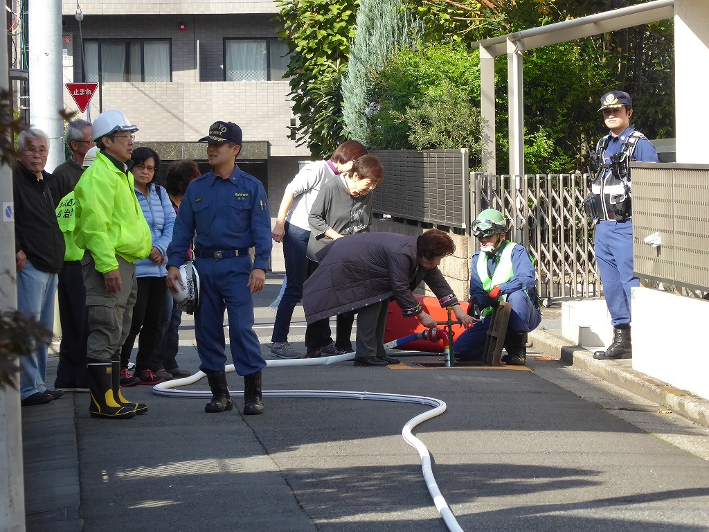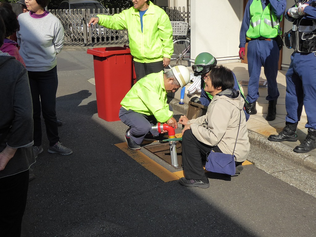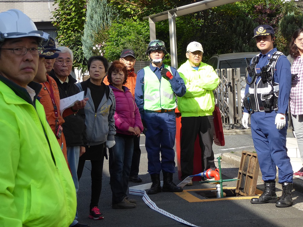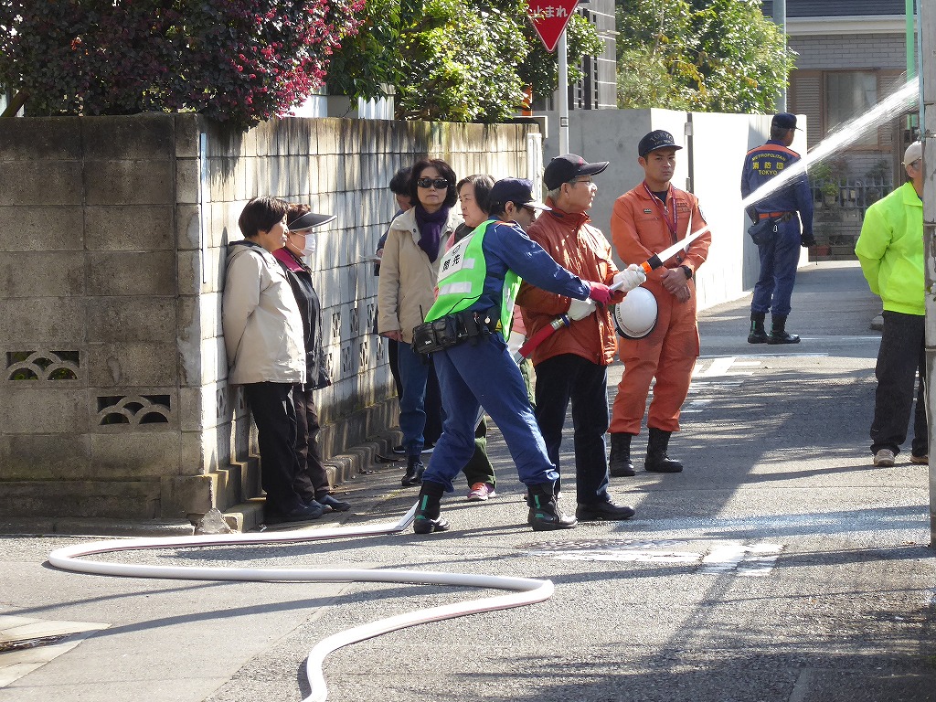 ■11月13日(日)野沢ふれあいの家周辺の消火栓を使用して、スタンドパイプを使用した初期消火訓練が実施されました。 野沢4丁目町会さんの訓練は久しぶりということも有り、全員の方に消火栓の蓋開け、スタンドパイプの設置、送水、放水と一通り体験して頂きました。 その後消火器の放水訓練、最後に近くにある丸い蓋の消火栓の開閉も確認して頂きました。