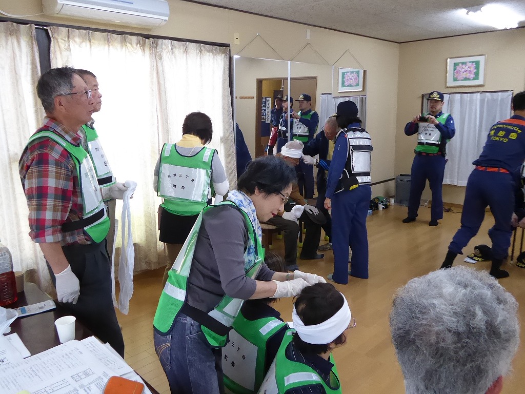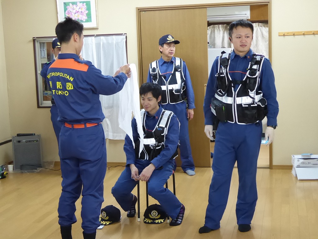 ■4月16日(日)田中名誉会長宅とその周辺に於いてスタンドパイプによる初期消火訓練と三角巾を使った包帯法の訓練が実施されました。 第1回目は、野沢龍雲寺さんにて開催予定でしたが雨天のため中止となり、今回が今年度1回目の訓練となりました。
