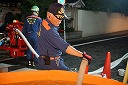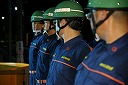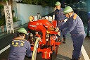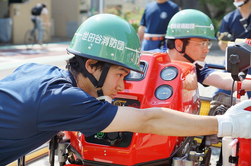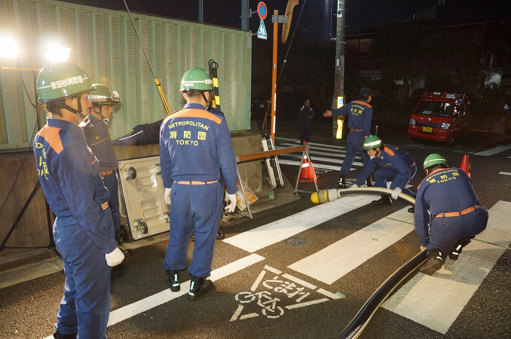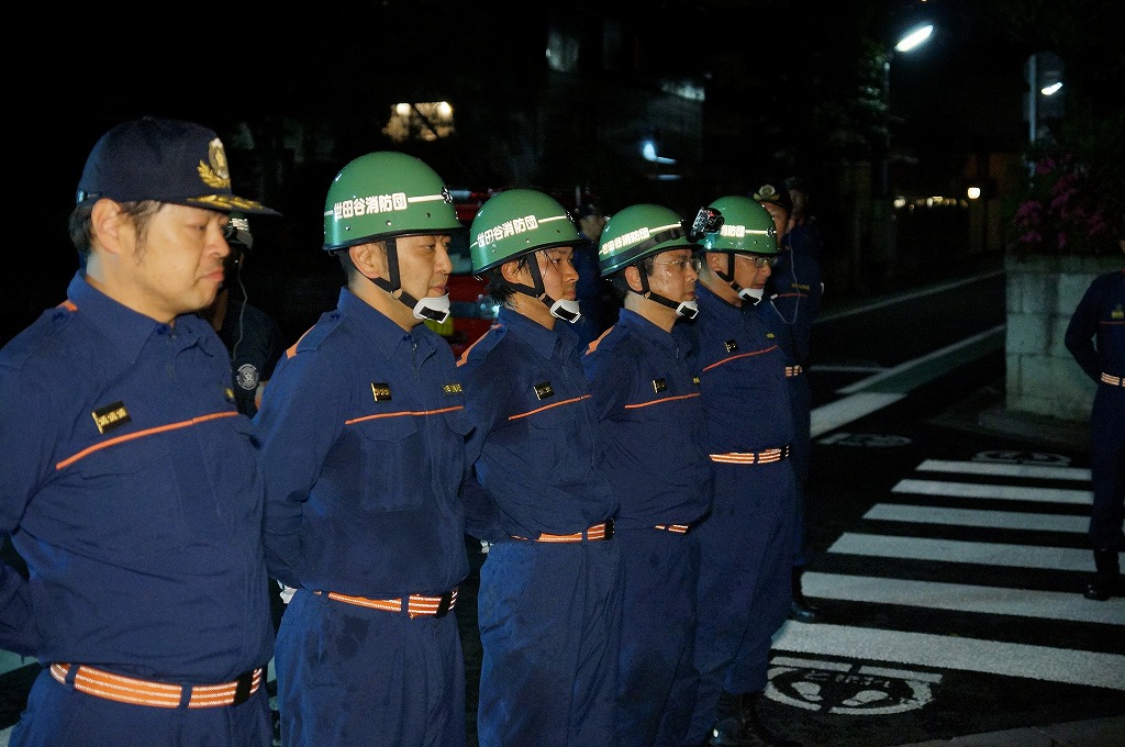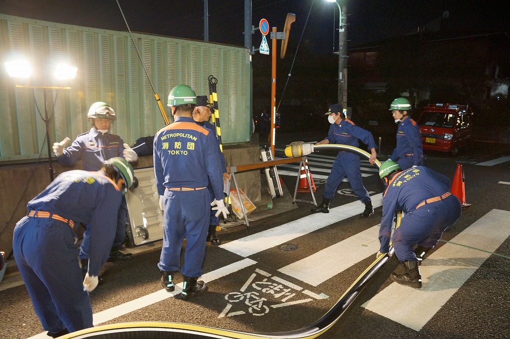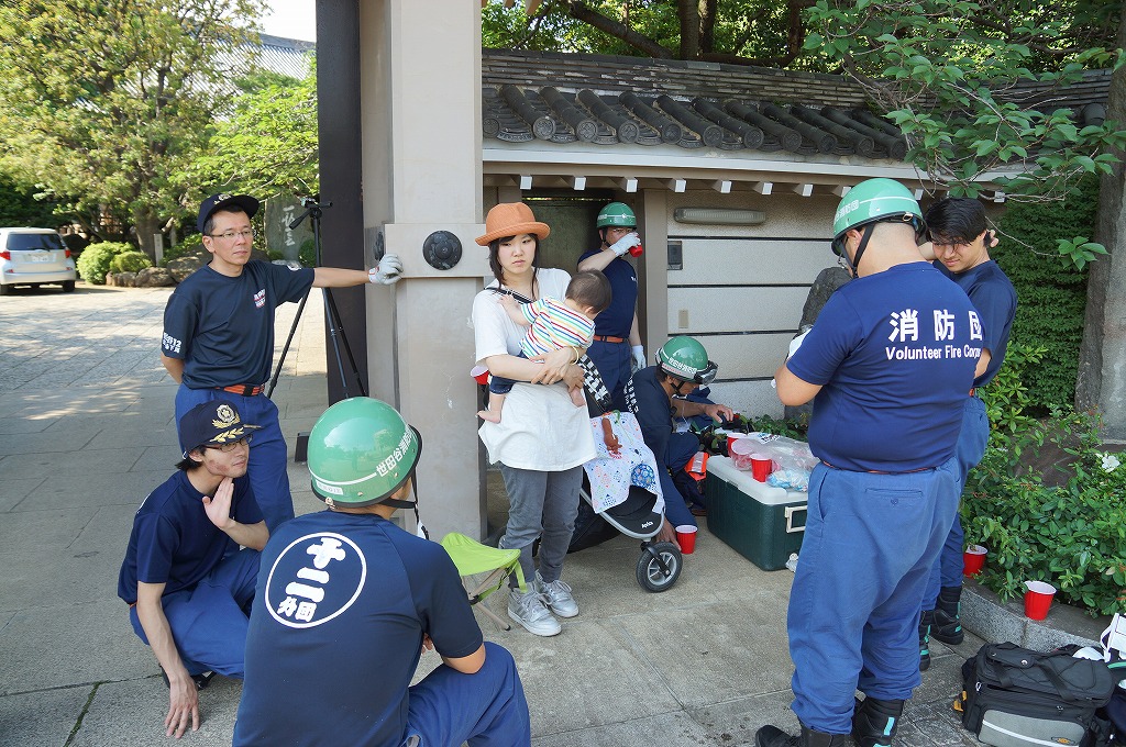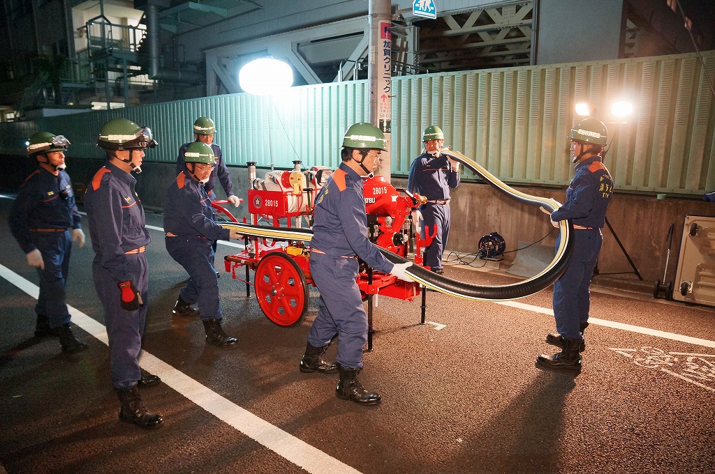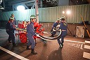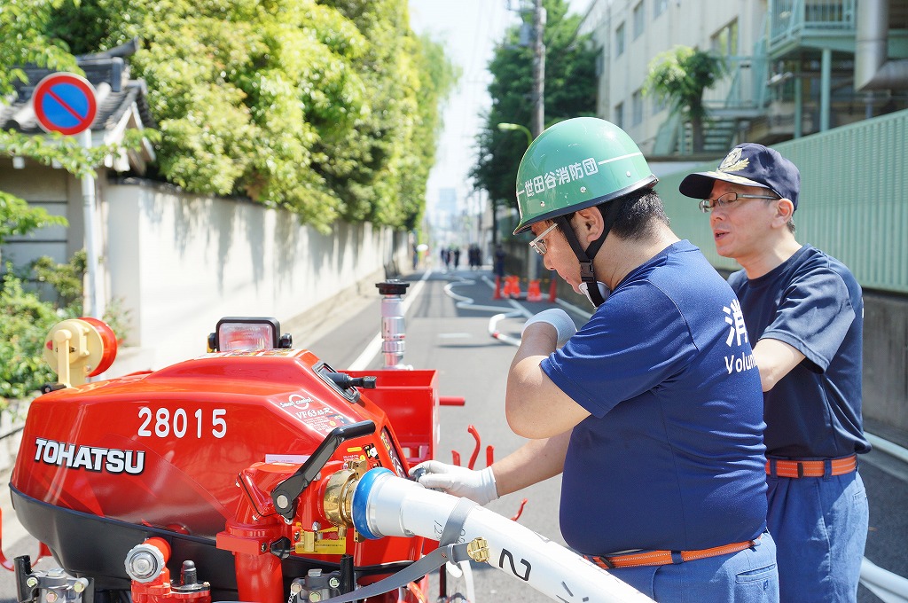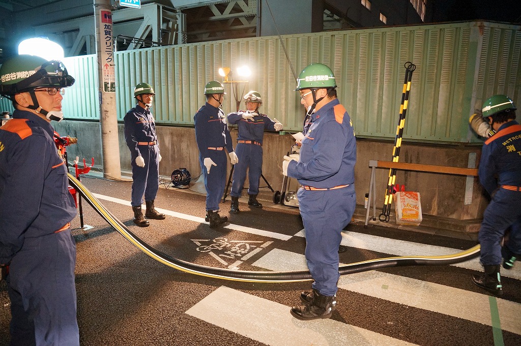 12分団の操法の訓練は、ポンプ機関・器具操作等 消火訓練はもちろん、「安全に危険個所を回避して通行頂く」という誘導訓練も含めています。