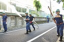 分団本部前公道での訓練を3月から始め、4月27日から週1~2回程度、龍雲寺と中丸小学校の間の道路を使用して行います。