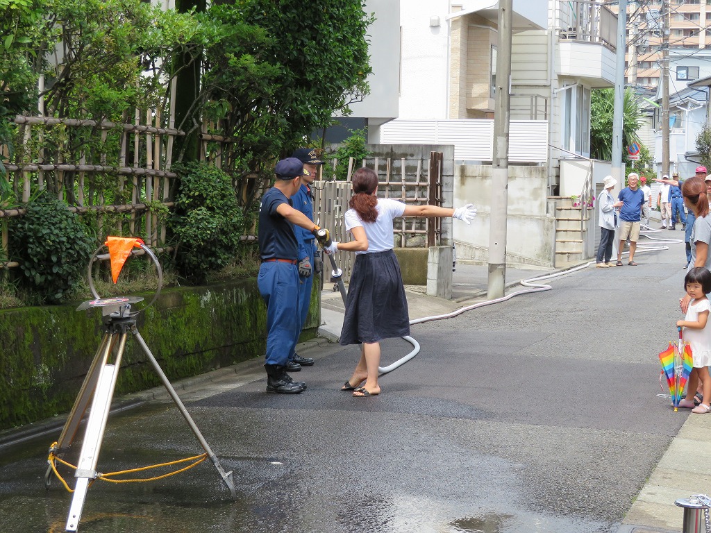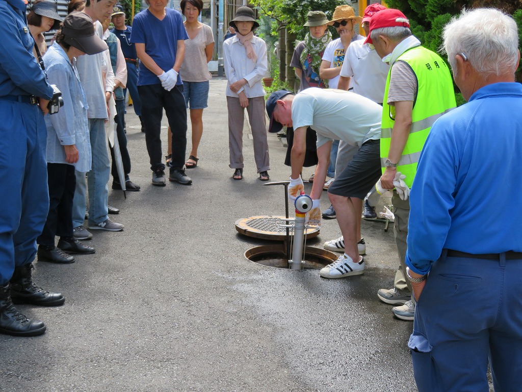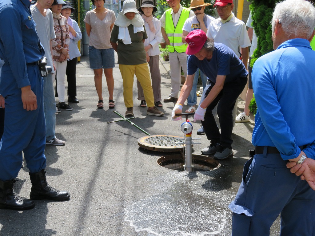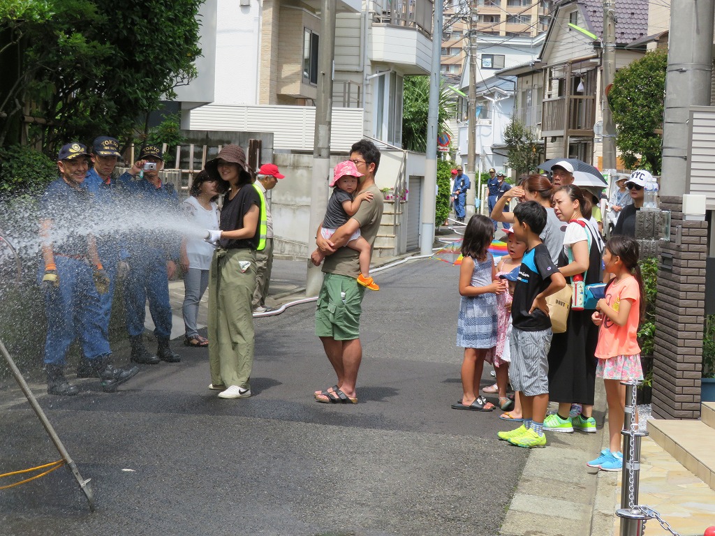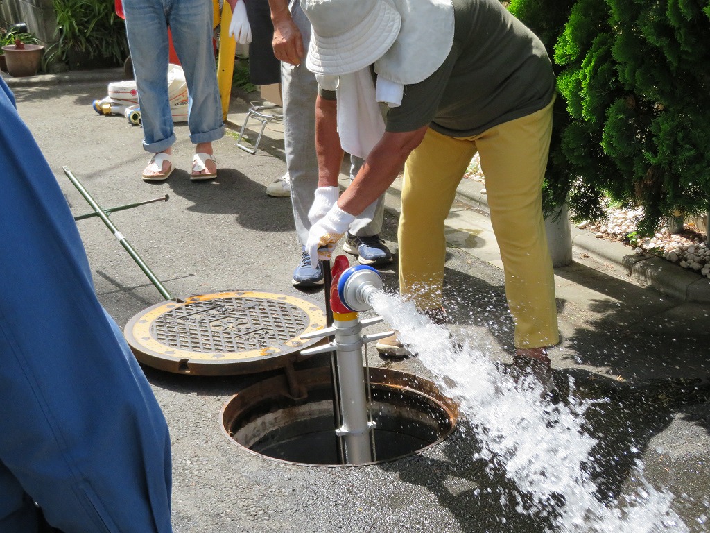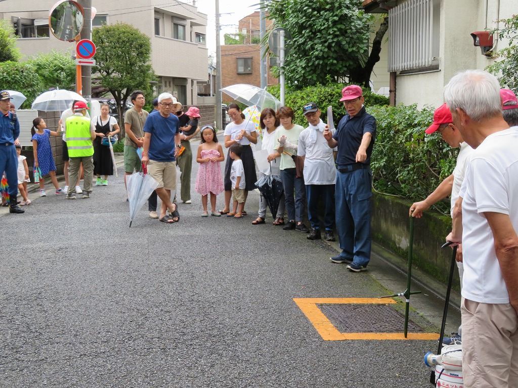 実施場所は交通量が多く思うように水出しを出来ず、最後に何名か放水体験できない方もいらっしゃいました。