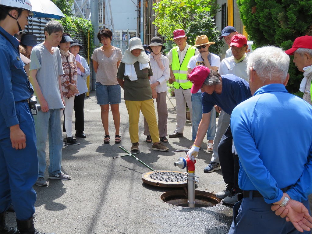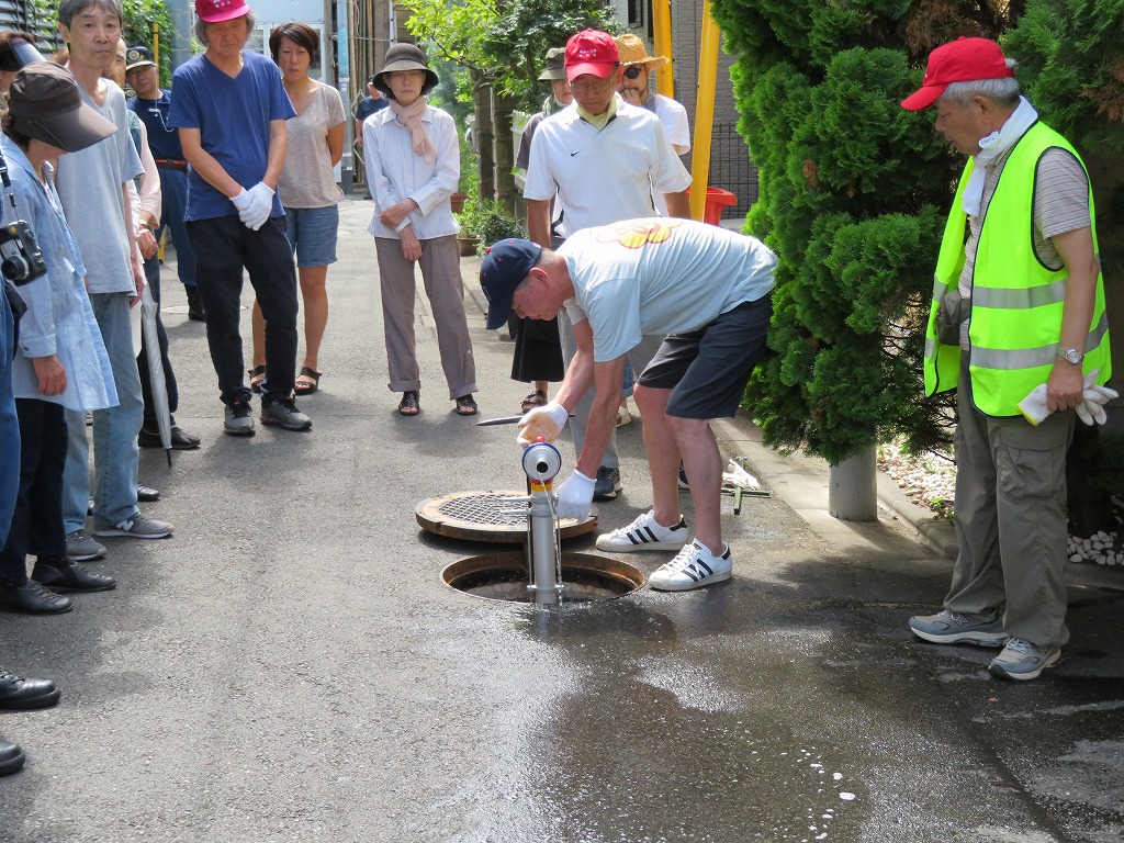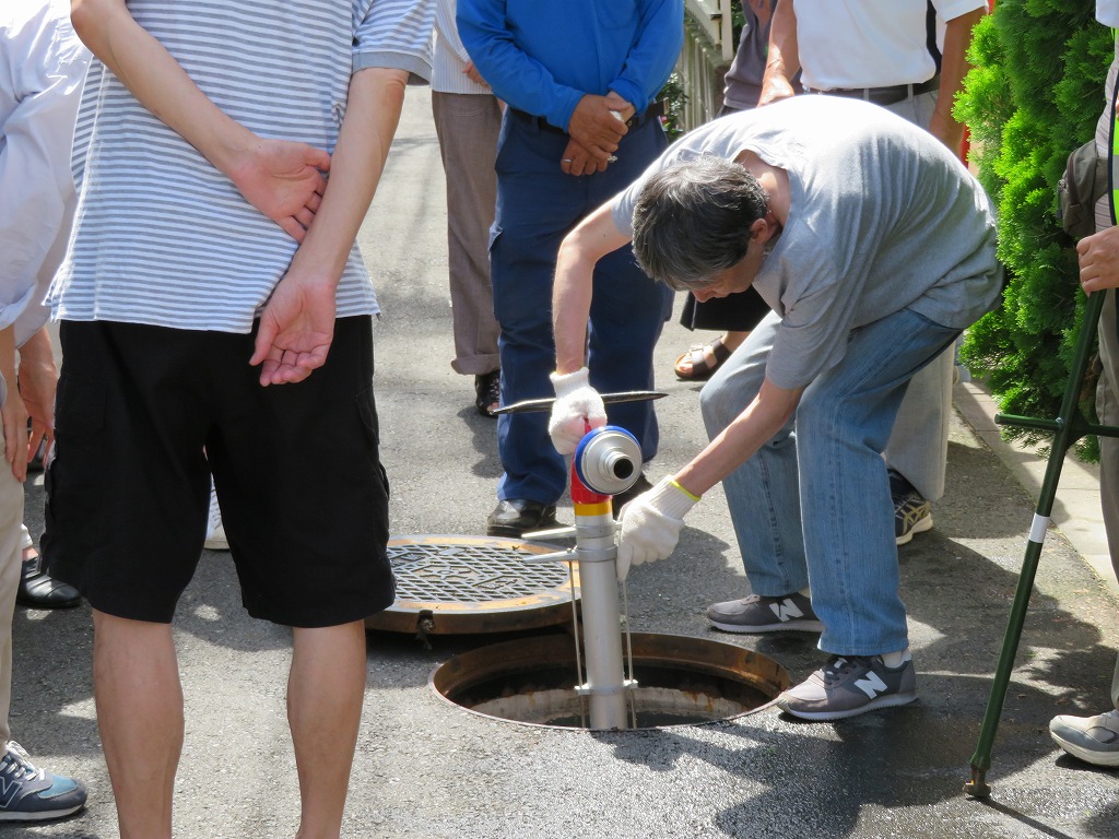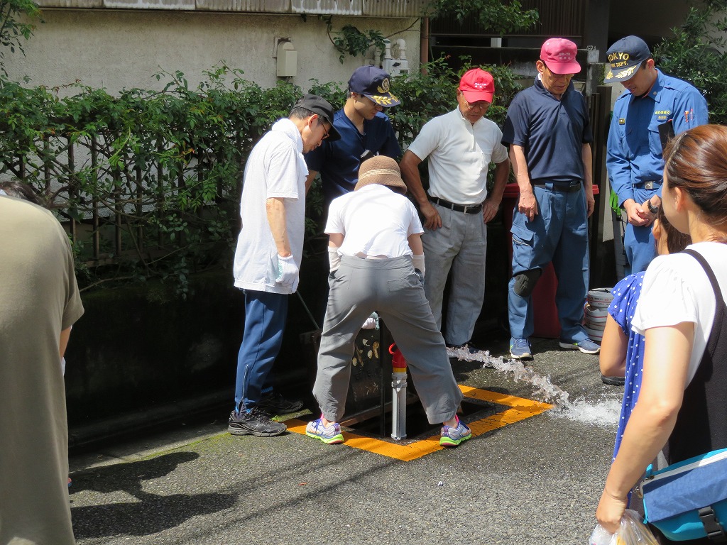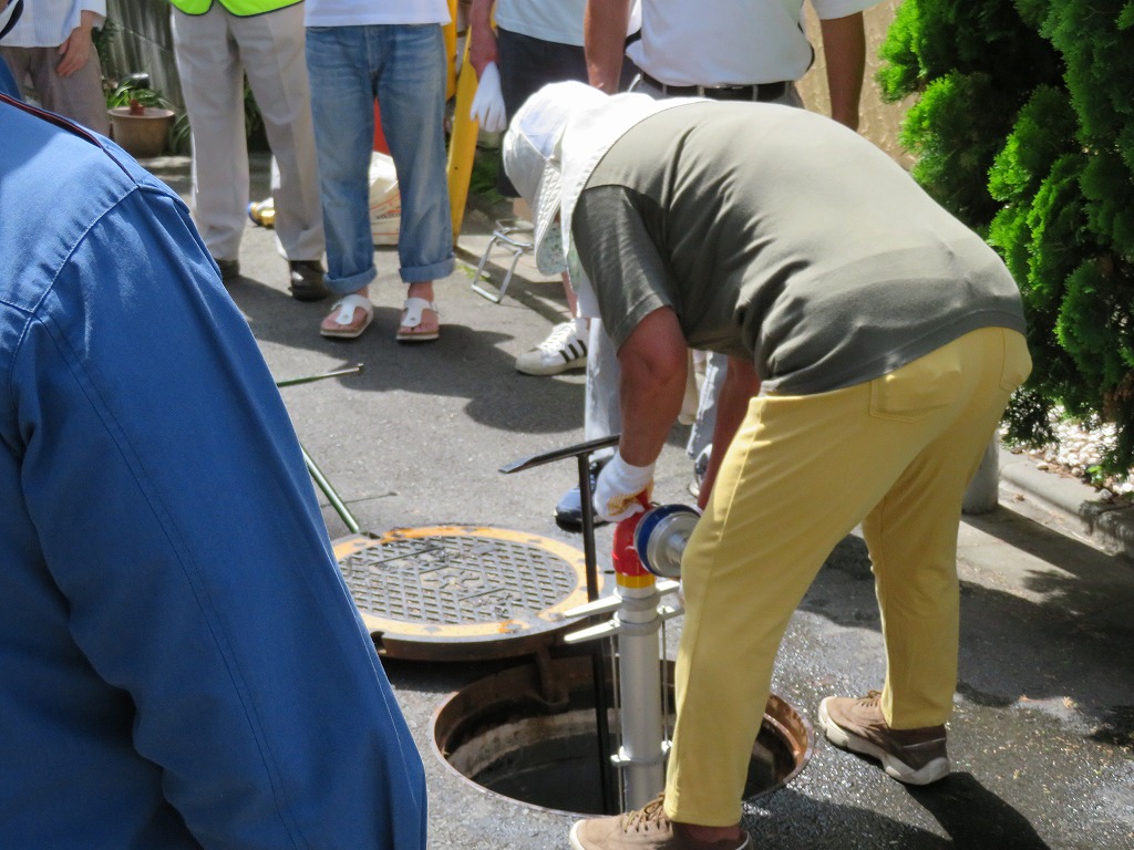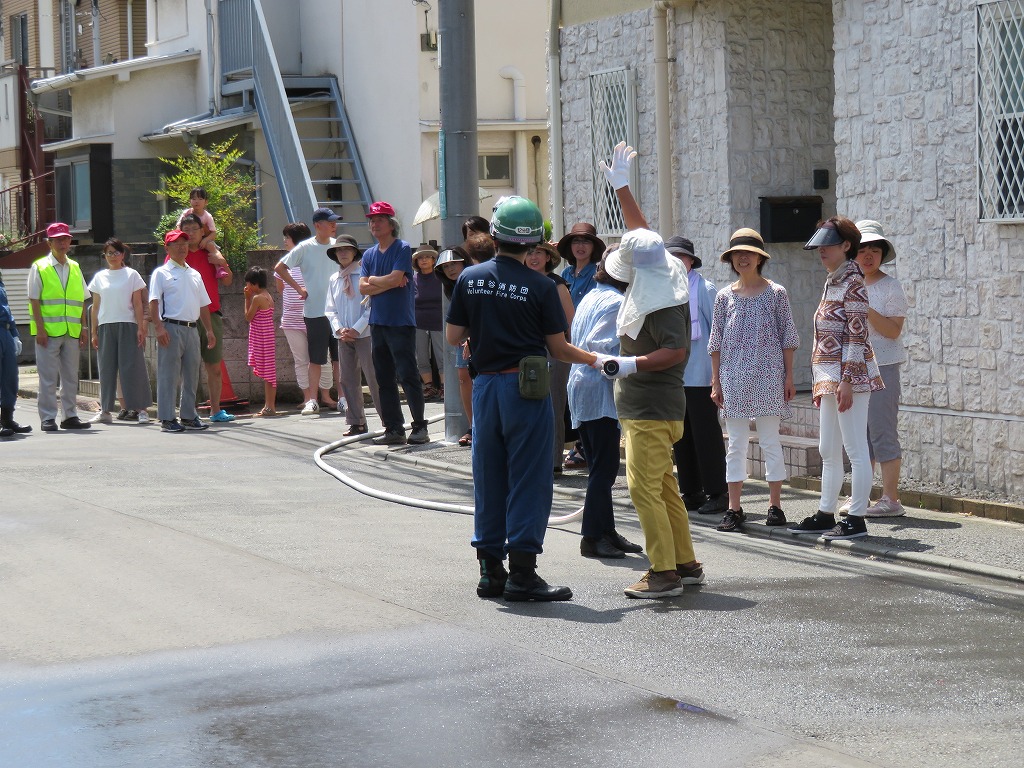 実施場所は交通量が多く思うように水出しを出来ず、最後に何名か放水体験できない方もいらっしゃいました。